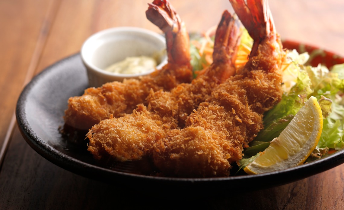 新鮮なエビを1つ1つ手で剥いて揚げる、プリップリ、サックサクのエビフライ、